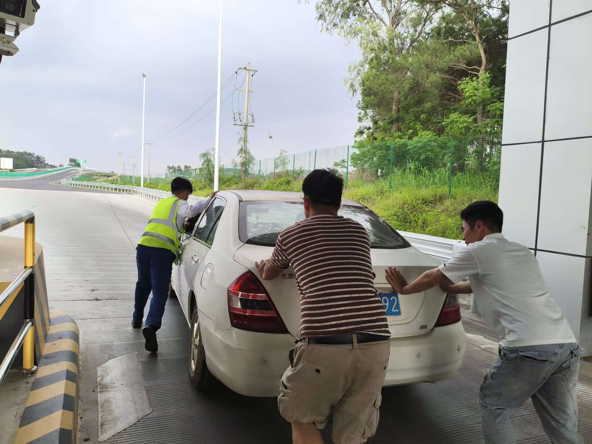 6月11日17時(shí)許,一輛白色轎車在途經(jīng)林橫高速陶圩收費(fèi)站完成繳費(fèi)后突發(fā)故障,引擎無(wú)法啟動(dòng)。當(dāng)班收費(fèi)員蔣雨潔與覃新恒見(jiàn)狀立即上前,并在第一時(shí)間將情況上報(bào)監(jiān)控中心,隨后幫助司機(jī)將車輛推至外廣場(chǎng)安全區(qū)域,保障了收費(fèi)現(xiàn)場(chǎng)車輛的順暢通行。此外,收費(fèi)員還主動(dòng)協(xié)助司機(jī)排查車輛故障。在收費(fèi)員的幫助下,車輛順利啟動(dòng),司機(jī)緊握收費(fèi)員的手連聲道謝:“十分感謝你們的幫助,為南寧高速的暖心服務(wù)點(diǎn)贊!”
